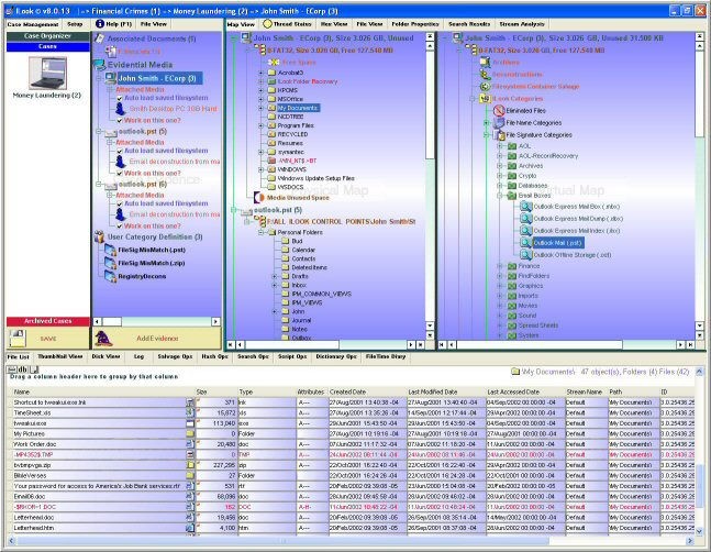 • Soporte de Múltiples Sistemas de Archivo. EnCase reconstruye los sistemas de archivos forenses en DOS, Windows (todas las versiones), Macintosh (MFS, HFS, HFS+), Linux, UNIX (Sun, Open BSD), CD-ROM, y los sistemas de archivos DVDR. Con EnCase un investigador va a ser capaz de ver, buscar y ordenar archivos desde estos discos concurridos con otros formatos en la misma investigación de una manera totalmente limpia y clara.