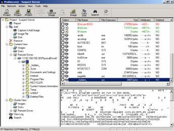 • Vista de archivos y otros datos en el espacio Libre. EnCase provee una interfaz tipo Explorador de Windows y una vista del Disco Duro de origen, tambiénpermite ver los archivos borrados y todos los datos en el espacio Libre. También muestra el Slack File con un color rojo después de terminar el espacio ocupado por el archivo dentro del cluster, permitiendo al investigador examinar inmediatamente y determinar cuándo el archivo reescrito fue creado. Los archivos Swap y Print Spooler son mostrados con sus estampillas de datos para ordenar y revisar.
