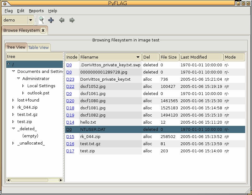 • The Virtual File SystemPyFlag usa la idea original de Unix de que “todo es un fichero”. El VFS es la presentación principal al usuario. No tiene que existir necesariamente en la imagen, pero representa información que ha sido deducida sobre el sistema de ficheros.